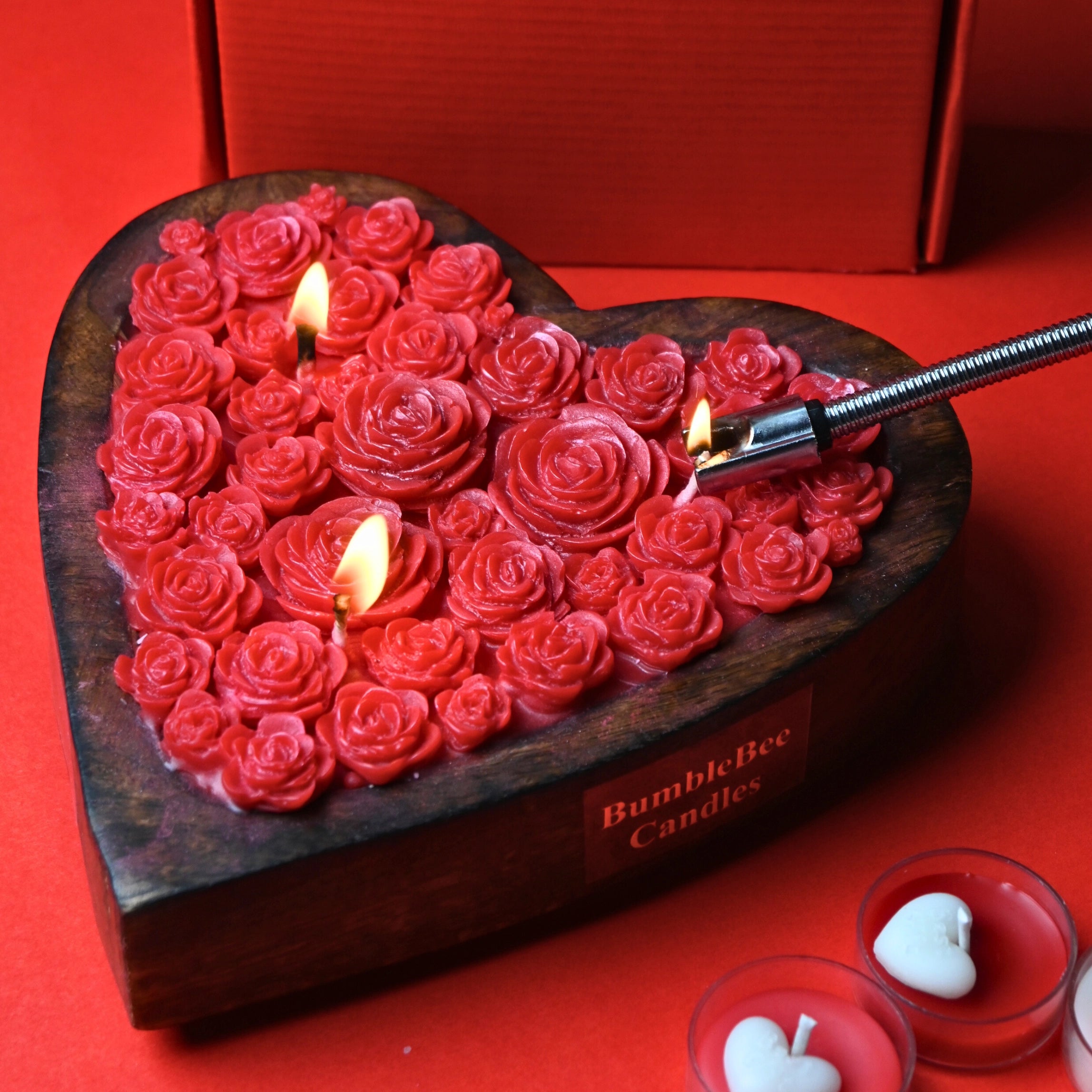 Make a lasting impression this Valentine’s Day with this stunning 8-inch wooden heart-shaped flower candle, crafted to celebrate love in its most elegant form. Hand-poured using 100% natural soy wax, the candle features an intricate floral design and is infused with a rich woody floral fragrance that feels warm, romantic, and refined. Weighing approximately 150 grams, it burns clean while adding a soft, luxurious glow to any space. Thoughtfully presented in a premium magnetic gift box and paired with a Valentine-themed card, this candle is a sophisticated, meaningful, and truly memorable gift for someone special.